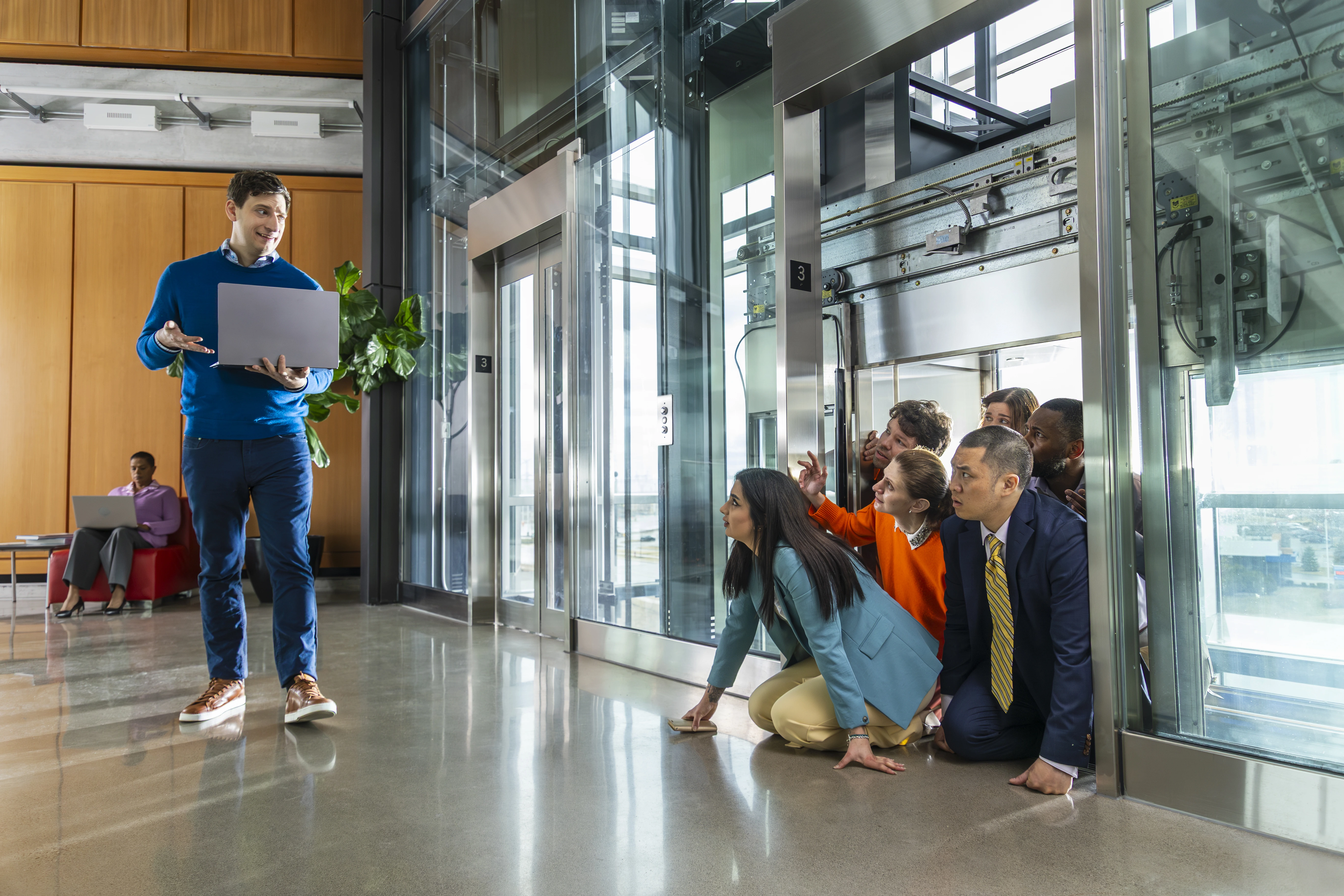 When your PCs operate at 55%, your whole office does. What if other parts of your office worked at 55%? What if the elevator only reached halfway up the floor? What if conference tables suddenly cut in half when Greg unplugged his laptop? We did exactly that. We cut all sorts of props in half and conducted a few stunts to create a hilarious spot.