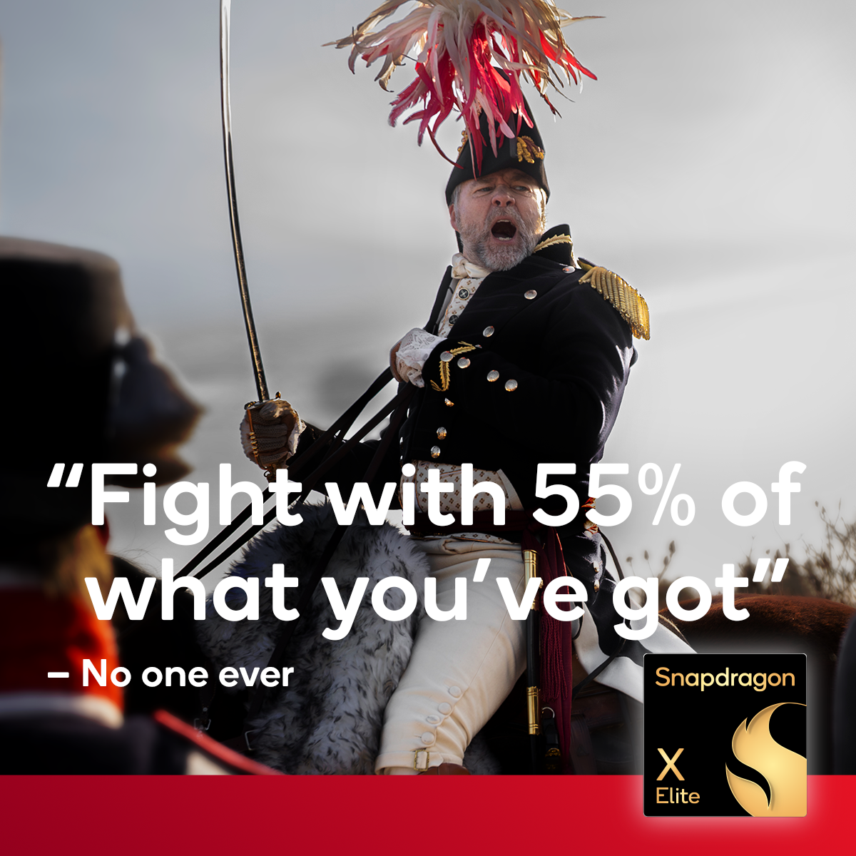 No coach ever gave a halftime speech asking players to give their best 55%. Napolean certainly never asked for 55% from his soldiers. But that's exactly what Intel is doing. So we created fun recreations of exactly those moments. We took iconic scenes from movies and put a Snapdragon spin on them. The leaders ask for 55% with their whole chest, but the confused reactions from their audience makes the spot a joy to watch.
